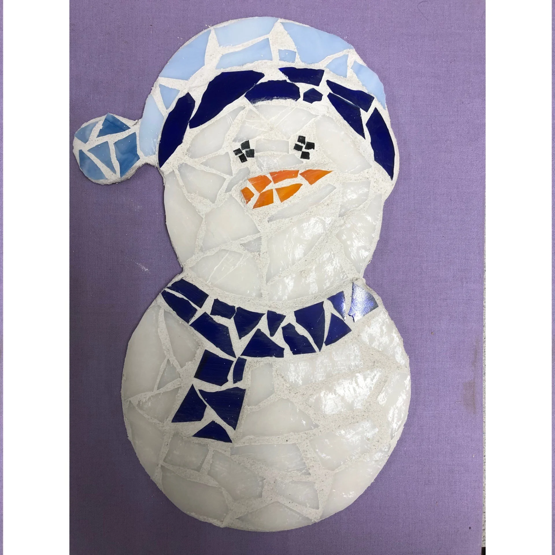 Mosaic Snowman - Get into the winter spirit with this fun and festive Mosaic Snowman Workshop! In this hands-on class, participants will create a charming snowman design using colorful mosaic tiles, glass pieces, and grout. Guided step-by-step by an experienced instructor, you’ll learn the basics of mosaic art